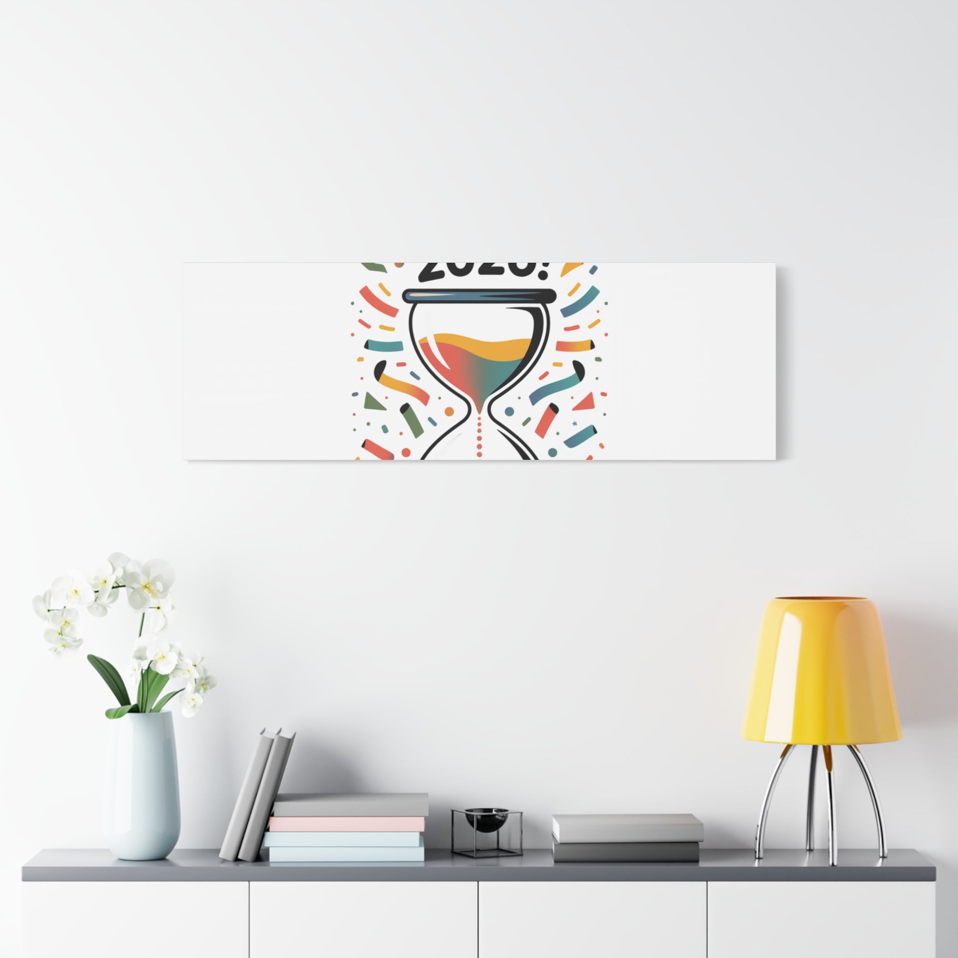 Text-led canvas print featuring a playful hourglass illustration and bold countdown headline that captures the New Year Countdown mood—witty optimism balanced with self-aware humor. The clean, modern layout and restrained color palette read current and adaptable for end-of-year displays; the design works as a casual wall accent for parties, home offices, or seasonal décor, aligning with searches for 2026 goals, new year motivation, and new year humor. Product features - 2 rubber dots on bottom for stability when hung - Unique JONDO coating with UL-certified Greenguard Gold inks - Printed with non-toxic latex inks - Materials: cotton/polyester composite canvas, pine wood frame - Back hanging included; slight size tolerance +/- 1/8" (3.2mm) Care instructions - If the canvas does gather any dust, you may wipe it off gently with a clean, damp cloth.