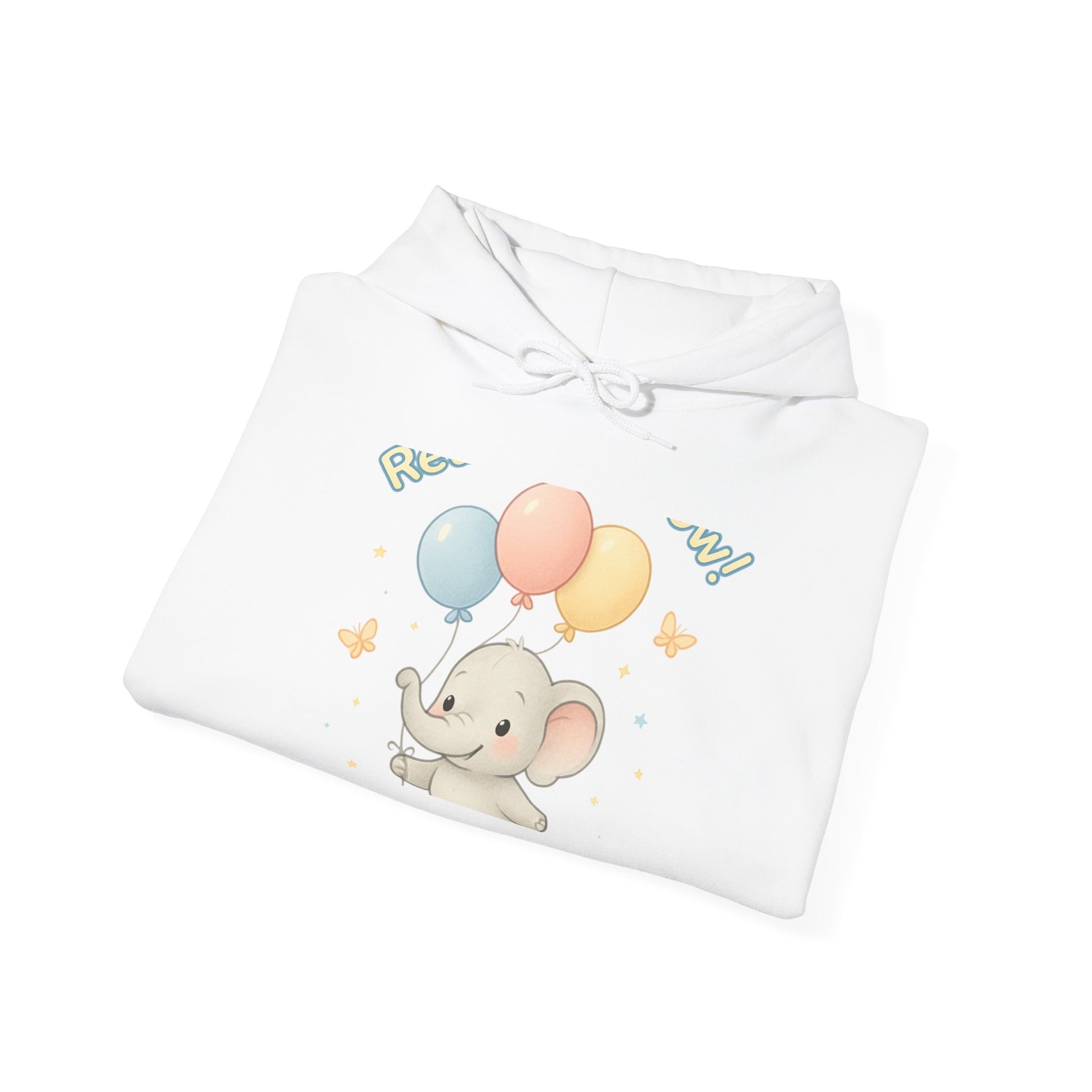 Cute Baby Elephant Hoodie with Balloons – Kids Animal Nursery Gift