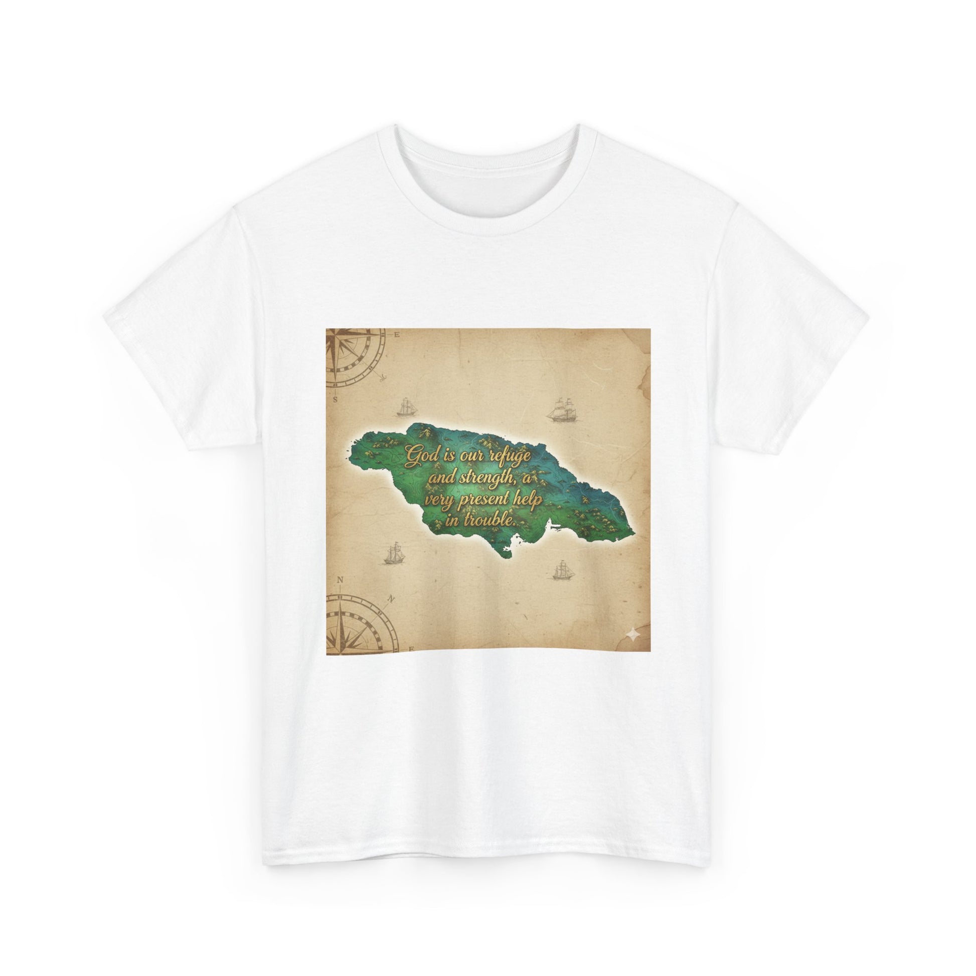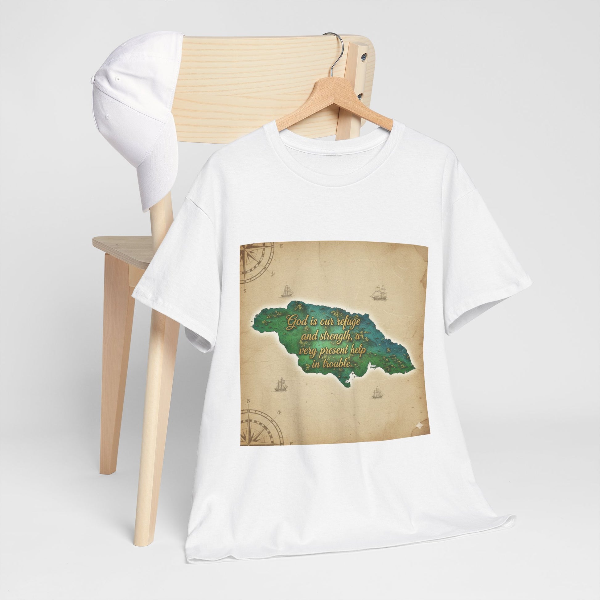 Jamaica Map Vintage Poster Tee — "One Love, One Heart" Graphic T-Shirt