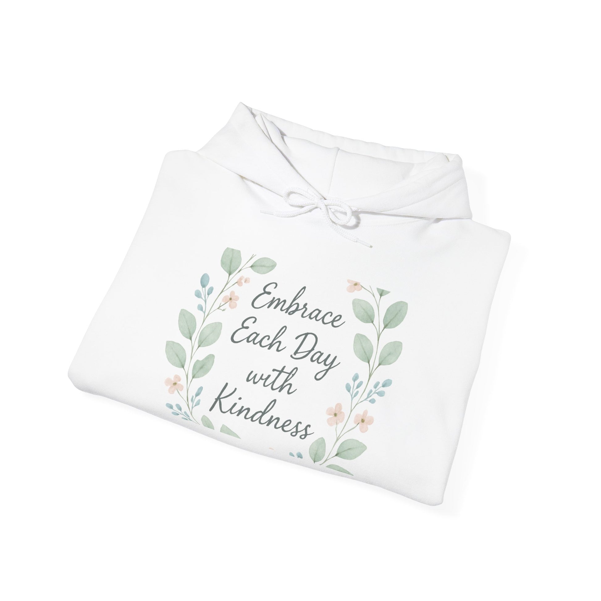 Kindness Floral Hoodie — "Embrace Each Day with Kindness" Inspirational Pullover