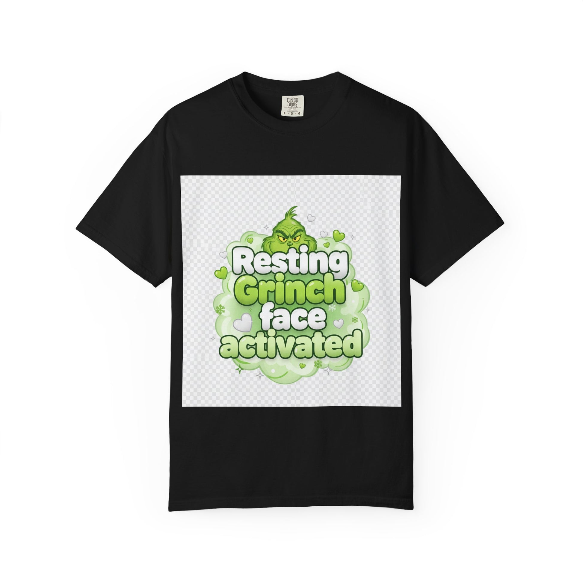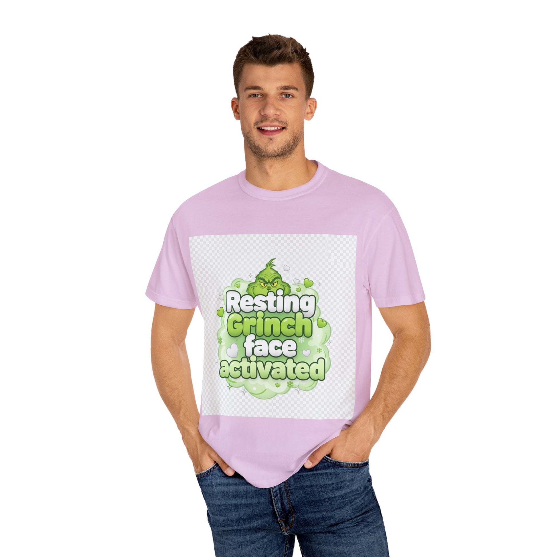 A laid-back, garment-dyed tee with a wink of holiday mischief. Soft, lived-in cotton and a relaxed cut make this shirt a go-to for slow mornings, hectic gift runs, or curled-up movie nights. The playful green graphic reads “Resting Grinch face activated,” adding a sly, tongue-in-cheek mood that fits quiet grinters and low-key revelers. It layers easily under a cardigan or wears solo with jeans—comfort-first, with a sense of humor.